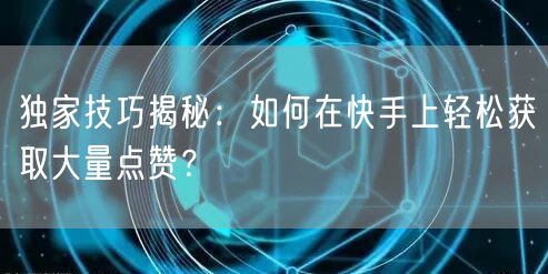 揭秘最新快手刷赞技巧,轻松成为热门话题焦点!